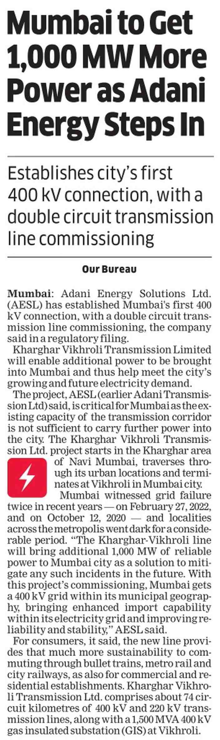 Mumbai to Get 1,000 MW more power as Adani energy steps inOct 03, 2023 | The Economic Times