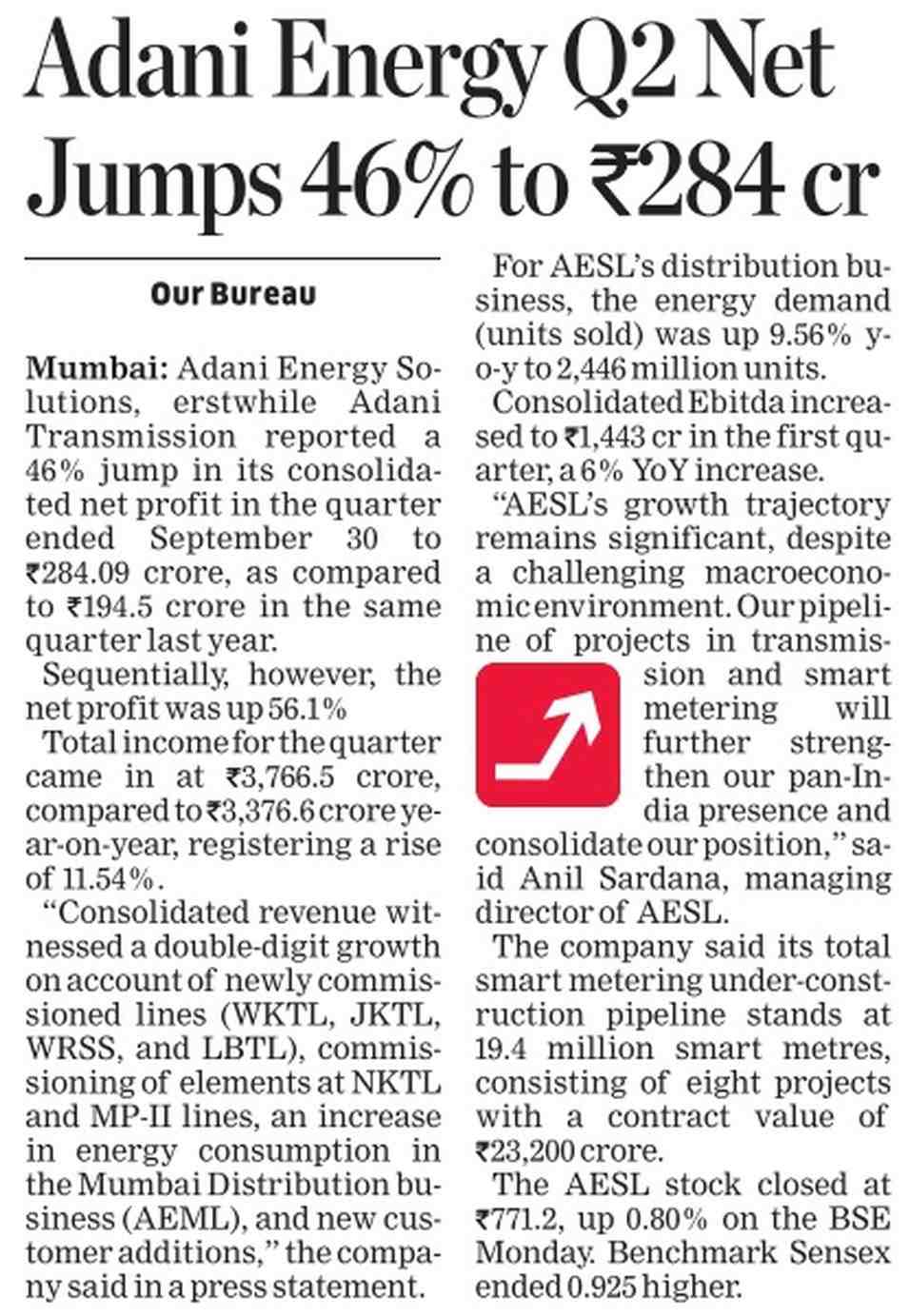 Adani Energy Q2 Net Jumps 46% to Rs 84 crNov 07, 2023 | The Economic Times